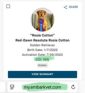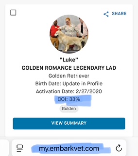 Golden Retriever | Pedigree 12 Gen COI | Embark DNA COI | K9 Data Link |