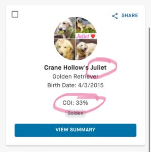 Golden Romance Legendary Lad | 14.31% | 33% | https://k9-data.org/dog/detail/782657/coi |