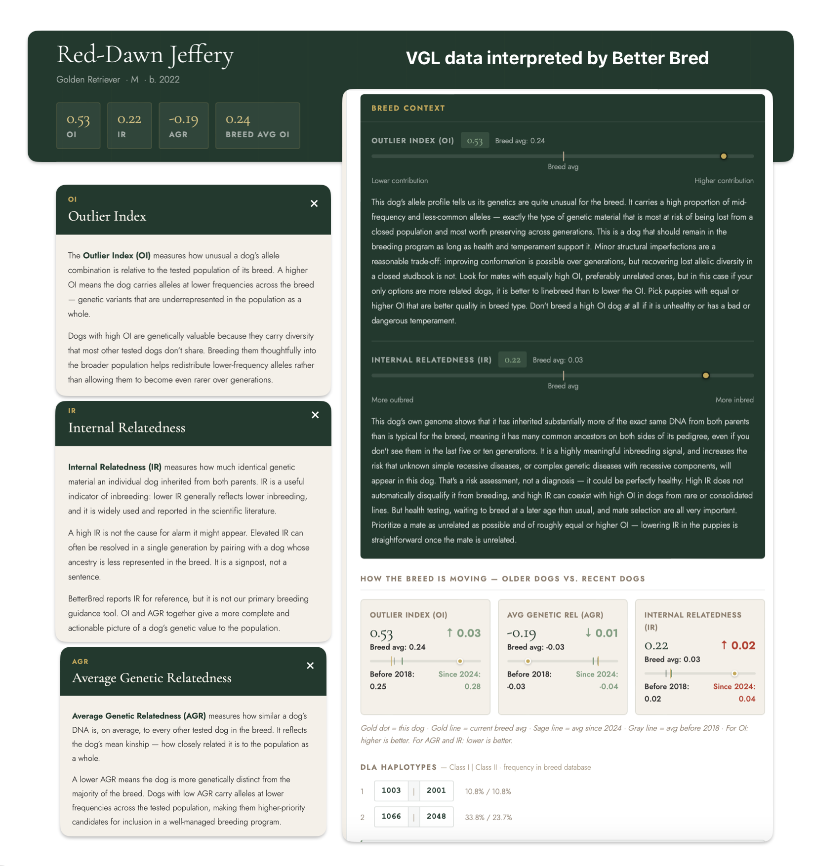 Red-Dawn Jeffery‘s BetterBred report from VGL data